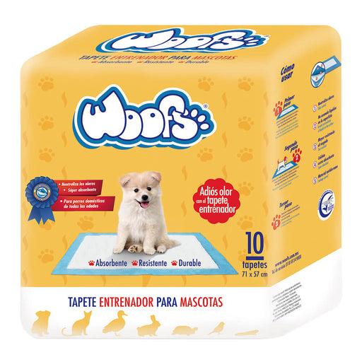 Contiene: Woofs, Tapete Entrenador para Mascotas, 60 piezas (6 bolsas de 10 tapetes) Acerca de: Woofs es el tapete entrenador para mascotas con ese...